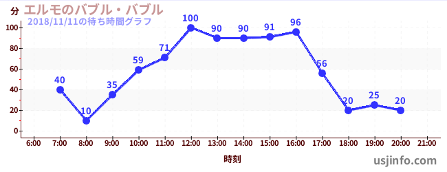 • エルモのバブル・バブル$B$N(B2018年11月11日の待ち時間