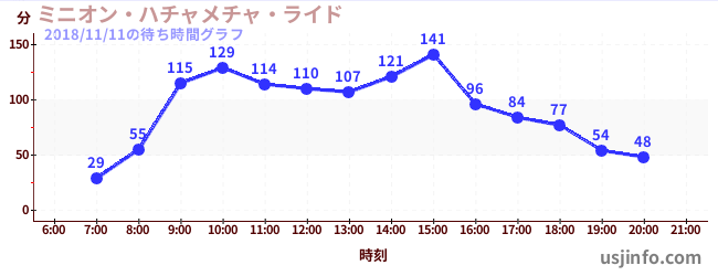 • ミニオン・ハチャメチャ・ライド$B$N(B2018年11月11日の待ち時間