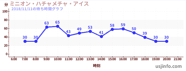 • ミニオン・ハチャメチャ・アイス$B$N(B2018年11月11日の待ち時間
