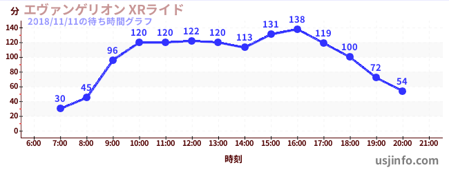 • エヴァンゲリオン XRライド$B$N(B2018年11月11日の待ち時間