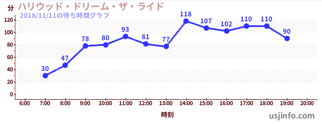 • ハリウッド・ドリーム・ザ・ライド$B$N(B2018年11月11日の待ち時間