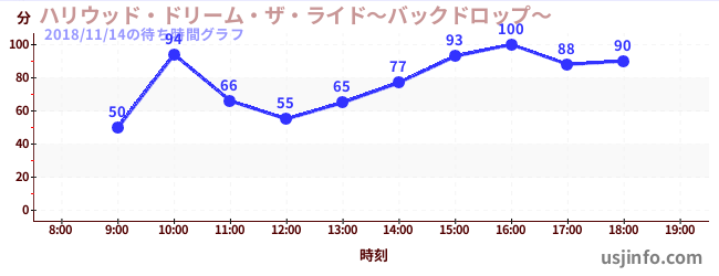 • ハリウッド・ドリーム・ザ・ライド〜バックドロップ〜$B$N(B2018年11月14日の待ち時間
