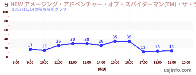 • NEW アメージング・アドベンチャー・オブ・スパイダーマン(TM)・ザ・ライド 4K3D$B$N(B2018年11月14日の待ち時間