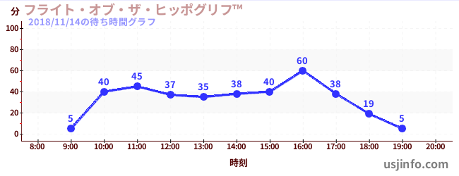 • フライト・オブ・ザ・ヒッポグリフ™$B$N(B2018年11月14日の待ち時間