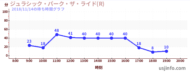 • ジュラシック・パーク・ザ・ライド(R)$B$N(B2018年11月14日の待ち時間