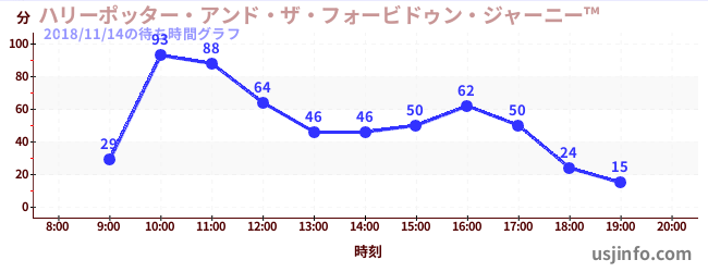 • ハリーポッター・アンド・ザ・フォービドゥン・ジャーニー™$B$N(B2018年11月14日の待ち時間