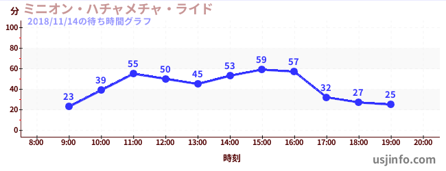 • ミニオン・ハチャメチャ・ライド$B$N(B2018年11月14日の待ち時間