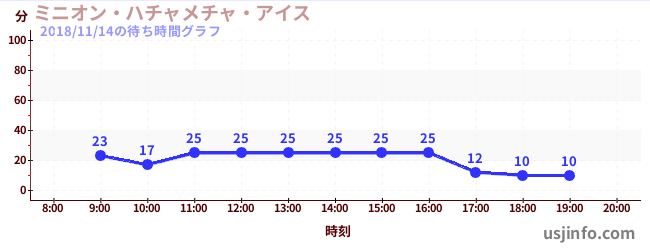 • ミニオン・ハチャメチャ・アイス$B$N(B2018年11月14日の待ち時間