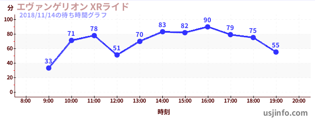 • エヴァンゲリオン XRライド$B$N(B2018年11月14日の待ち時間