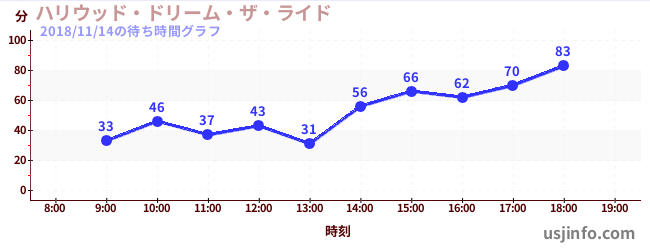 • ハリウッド・ドリーム・ザ・ライド$B$N(B2018年11月14日の待ち時間