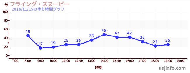 • フライング・スヌーピー$B$N(B2018年11月15日の待ち時間