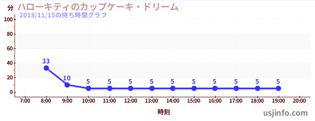 • ハローキティのカップケーキ・ドリーム$B$N(B2018年11月15日の待ち時間