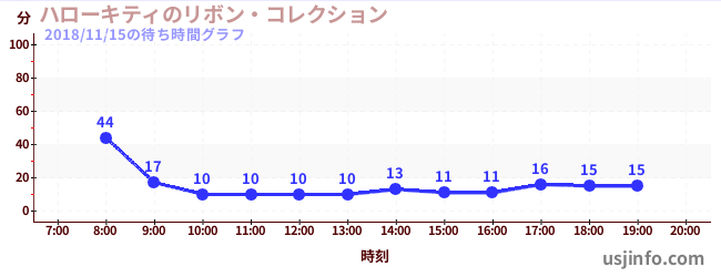 • ハローキティのリボン・コレクション$B$N(B2018年11月15日の待ち時間