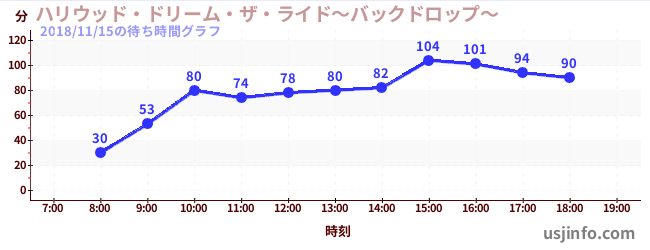 • ハリウッド・ドリーム・ザ・ライド〜バックドロップ〜$B$N(B2018年11月15日の待ち時間
