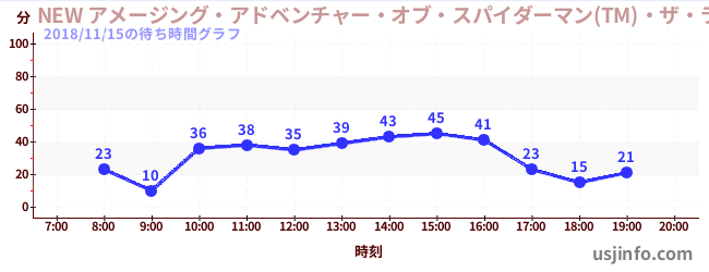 • NEW アメージング・アドベンチャー・オブ・スパイダーマン(TM)・ザ・ライド 4K3D$B$N(B2018年11月15日の待ち時間