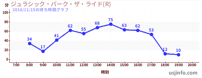 • ジュラシック・パーク・ザ・ライド(R)$B$N(B2018年11月15日の待ち時間