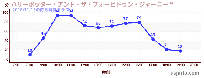 • ハリーポッター・アンド・ザ・フォービドゥン・ジャーニー™$B$N(B2018年11月15日の待ち時間