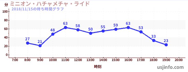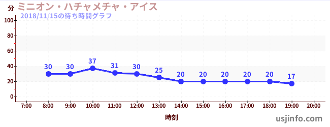 • ミニオン・ハチャメチャ・ライド$B$N(B2018年11月15日の待ち時間