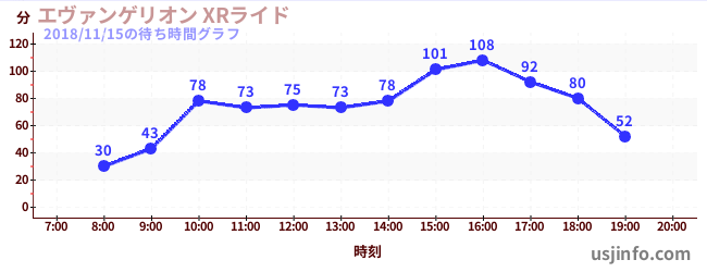 • エヴァンゲリオン XRライド$B$N(B2018年11月15日の待ち時間