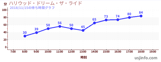 • ハリウッド・ドリーム・ザ・ライド$B$N(B2018年11月15日の待ち時間