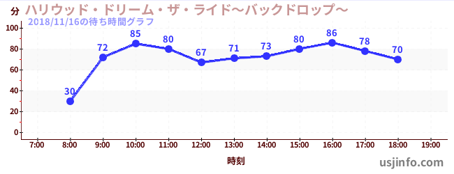• ハリウッド・ドリーム・ザ・ライド〜バックドロップ〜$B$N(B2018年11月16日の待ち時間