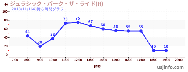 • ジュラシック・パーク・ザ・ライド(R)$B$N(B2018年11月16日の待ち時間