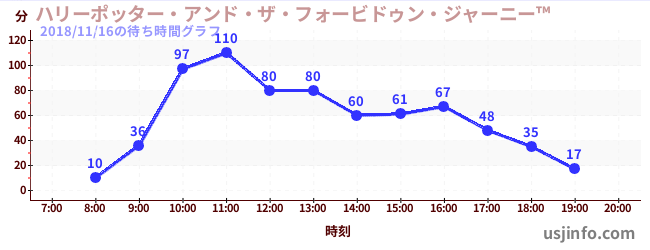 • ハリーポッター・アンド・ザ・フォービドゥン・ジャーニー™$B$N(B2018年11月16日の待ち時間