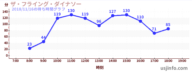 • ザ・フライング・ダイナソー$B$N(B2018年11月16日の待ち時間