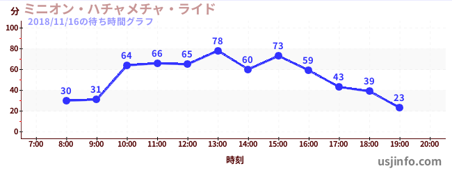 • ミニオン・ハチャメチャ・ライド$B$N(B2018年11月16日の待ち時間