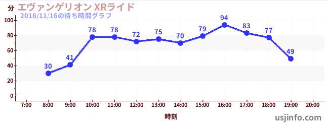 • エヴァンゲリオン XRライド$B$N(B2018年11月16日の待ち時間