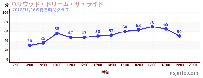 • ハリウッド・ドリーム・ザ・ライド$B$N(B2018年11月16日の待ち時間