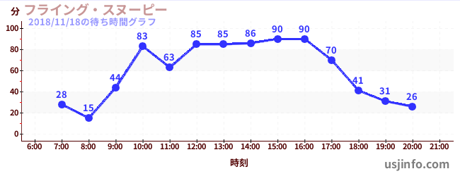 • フライング・スヌーピー$B$N(B2018年11月18日の待ち時間