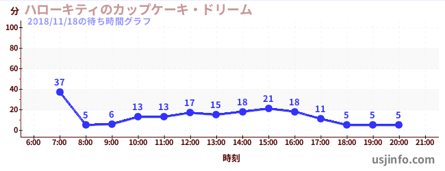• ハローキティのカップケーキ・ドリーム$B$N(B2018年11月18日の待ち時間
