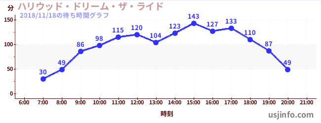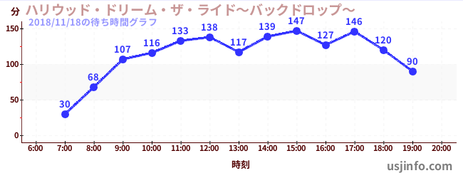 • ハリウッド・ドリーム・ザ・ライド〜バックドロップ〜$B$N(B2018年11月18日の待ち時間