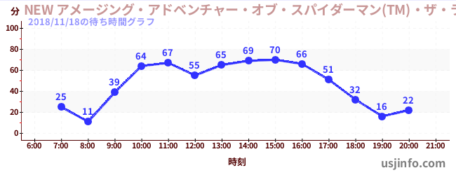 • NEW アメージング・アドベンチャー・オブ・スパイダーマン(TM)・ザ・ライド 4K3D$B$N(B2018年11月18日の待ち時間