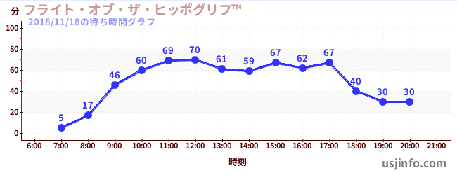 • フライト・オブ・ザ・ヒッポグリフ™$B$N(B2018年11月18日の待ち時間