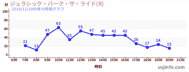 • ジュラシック・パーク・ザ・ライド(R)$B$N(B2018年11月18日の待ち時間