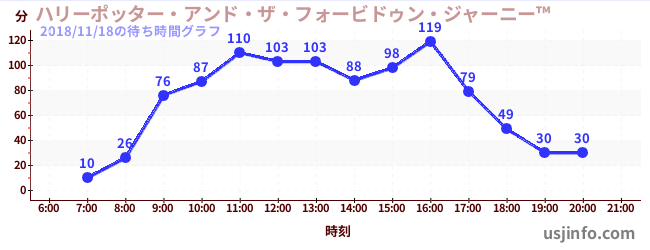 • ハリーポッター・アンド・ザ・フォービドゥン・ジャーニー™$B$N(B2018年11月18日の待ち時間