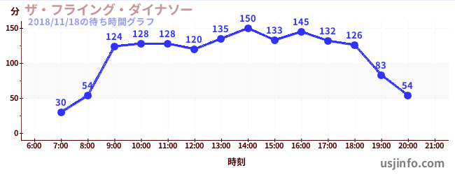 • ザ・フライング・ダイナソー$B$N(B2018年11月18日の待ち時間