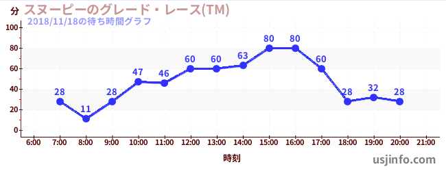 • スヌーピーのグレード・レース(TM)$B$N(B2018年11月18日の待ち時間