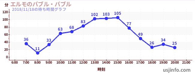 • エルモのバブル・バブル$B$N(B2018年11月18日の待ち時間