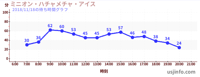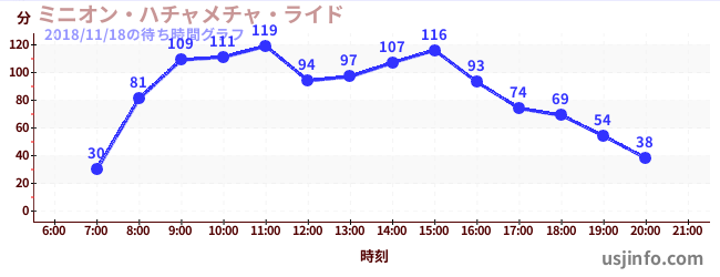 • ミニオン・ハチャメチャ・ライド$B$N(B2018年11月18日の待ち時間