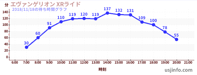• エヴァンゲリオン XRライド$B$N(B2018年11月18日の待ち時間