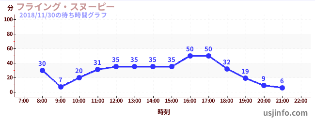 • フライング・スヌーピー$B$N(B2018年11月30日の待ち時間