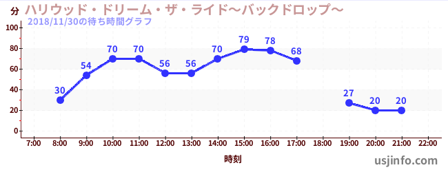 • ハリウッド・ドリーム・ザ・ライド〜バックドロップ〜$B$N(B2018年11月30日の待ち時間