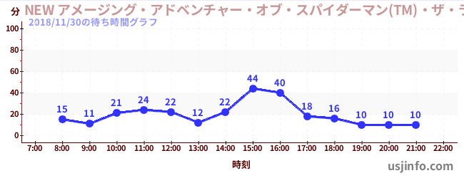 • NEW アメージング・アドベンチャー・オブ・スパイダーマン(TM)・ザ・ライド 4K3D$B$N(B2018年11月30日の待ち時間