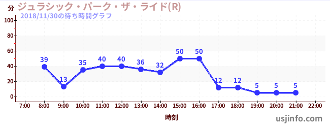 • ジュラシック・パーク・ザ・ライド(R)$B$N(B2018年11月30日の待ち時間
