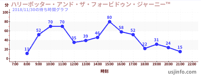 • ハリーポッター・アンド・ザ・フォービドゥン・ジャーニー™$B$N(B2018年11月30日の待ち時間