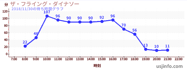 • ザ・フライング・ダイナソー$B$N(B2018年11月30日の待ち時間