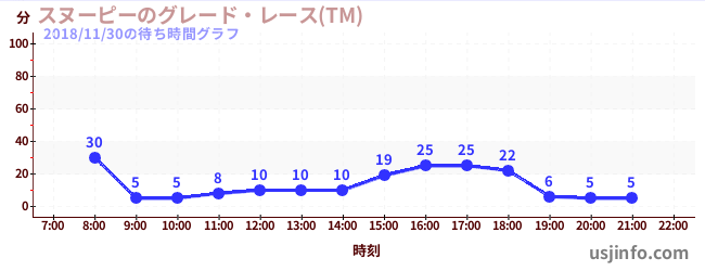 • スヌーピーのグレード・レース(TM)$B$N(B2018年11月30日の待ち時間
